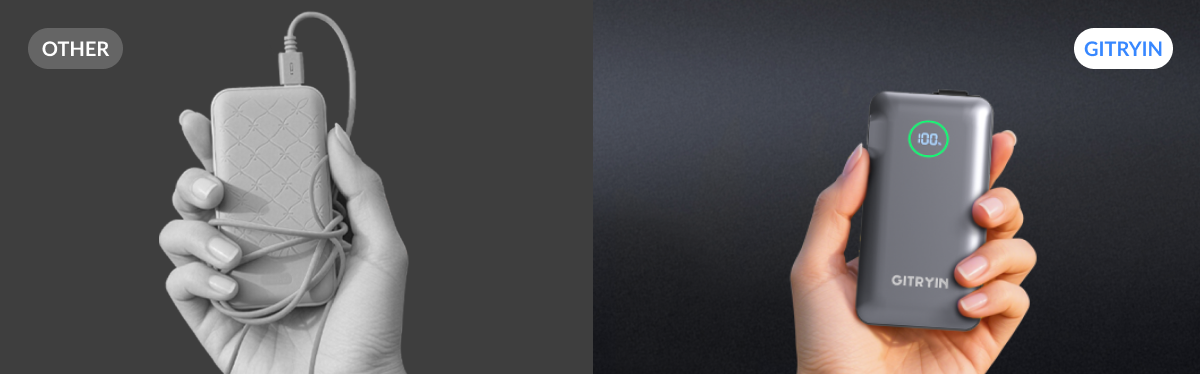Gitryin 10000mAh Retractable Power Bank with 35W fast charging, portable design, and retractable cable. Charge up to 3 devices anytime, anywhere.